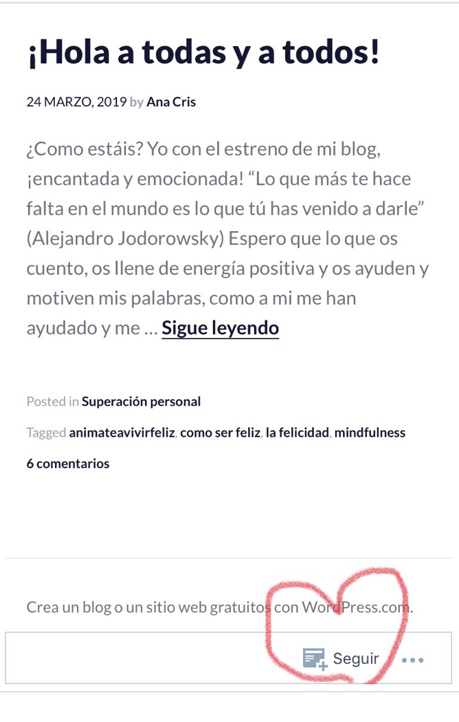 Cuando haces clic en seguir, aparece esta ventana en la que puedes poner tu correo electrónico y contraseña y así seguirme y ver todos los post que voy creando con mucha ilusión para vosotr@s y para amigos vuestr@s que penséis que les pueden gustar. Me anima mucho teneros a mi lado para seguir trabajando preparando historias interesantes y motivadoras y estoy a vuestra disposición si os gustaría que hablara de algún tema concreto . Muchas gracias por vuestro apoyo ❤️